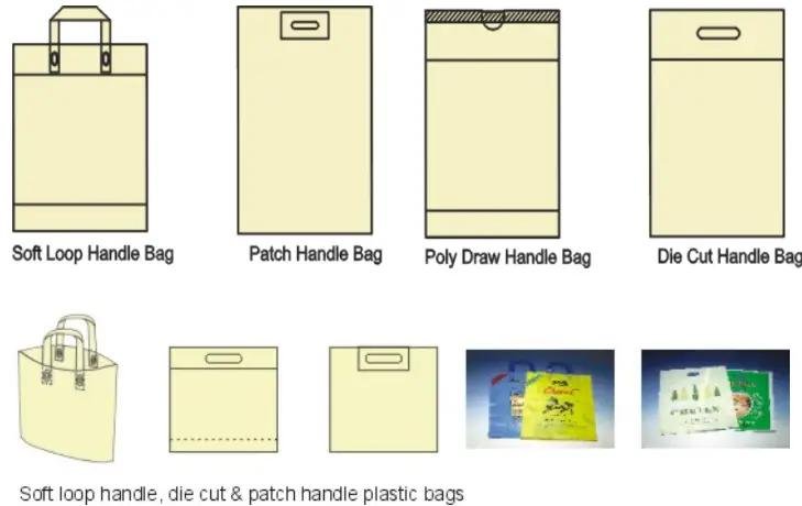 Soft loop handle bag Patch handle bag Poly draw handle bag Die cut handle bag |